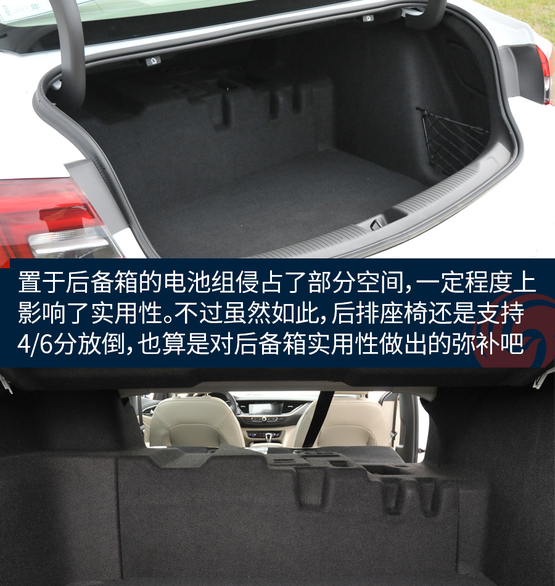 ????????置于后備箱的電池組侵占了部分空間,空間表現(xiàn)由燃油車型的434升縮至328升,在一定程度上影響了實(shí)用性。不過雖然如此,后排座椅還是支持4/6分放倒,這也算是對后備箱實(shí)用性做出的彌補(bǔ)吧。