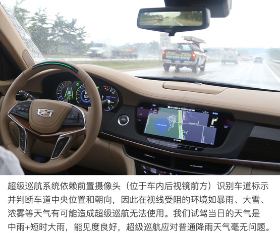 ????????超級巡航系統通過GPS定位的高精度地圖和車載攝像機定位和識別行駛路徑并判斷車輛所在的車道,所以遇到暴雨、大霧或沙塵等影響攝像頭工作的天氣,或者駛入隧道阻斷GPS信號的時候,超級巡航系統的使用可能受到影響。雖然這些突發狀況可能會導致超級巡航功能在行駛中突然推出,但不必擔心安全問題,系統會及時提示駕駛者接管汽車,其邏輯與駕駛者“失能”的提醒流程幾乎相同,駕駛員有從容的時間反應并接管汽車。