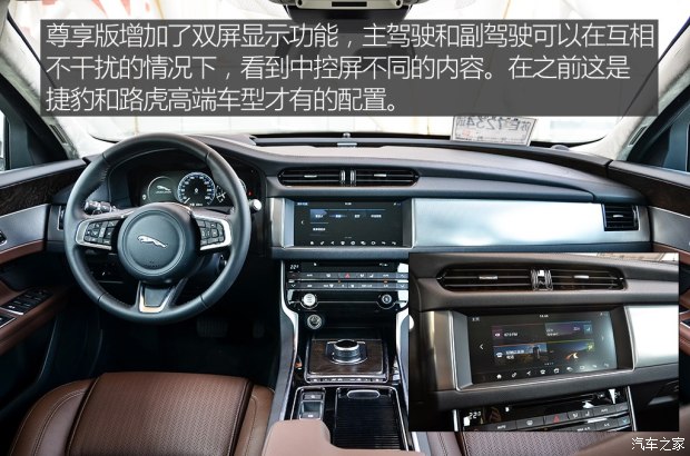 ????18款車型在外觀和內飾上并沒有明顯變化,這在之前的圖文實拍中進行了詳細解讀>點擊鏈接查看<。配置上增加了雙屏顯示功能,主駕駛和副駕駛可以在不互相干擾的情況下,看到中控屏不同的內容。在之前這是捷豹和路虎高端車型才有的配置,如今已經普及到XFL上面。