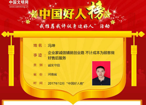 太康縣馮坤成功入選2017年12月“中國好人榜”