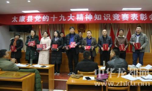 中華龍都網訊(周口報業全媒體記者馬治衛 通訊員 王慧星)屋外天寒地凍,屋內暖意融融。1月22日下午,太康縣委宣傳部、文明辦在縣工商局五樓會議室,對該縣在“學習十九大精神”網絡知識競賽活動中獲獎的42名先進個人和8個優秀組織單位進行了隆重表彰,以此在全縣再次掀十九大精神學習熱潮。