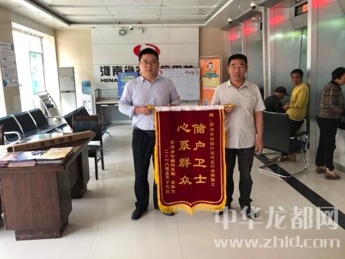 中華龍都網(wǎng)訊(周口報業(yè)全媒體記者 付永奇 通訊員 高少輝)5月24日上午,商水縣化河鄉(xiāng)村民史學習和村支書一同來到商水農(nóng)商銀行化河支行,為該支行送來一面“儲戶衛(wèi)士 心系群眾”的榮譽錦旗,感謝該支行幫其找到丟失的現(xiàn)金。