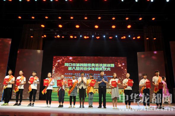 今年,經過組織申報、層層推薦、審核公示、投票評選等程序,“市美德少年評委會”授予商水縣湯莊一中的王一帆、殷夢丹,周口實驗小學的盧若沖,太康縣城關中學的李思墨等11名同學“周口市美德少年”榮譽稱號;授予王博、趙子怡等10名同學“周口市美德少年”提名榮譽稱號。在熱烈的掌聲中,這些身著佩帶的美德少年走向舞臺,與會領導為他們頒發獎杯和證書。看著手捧獎杯的美德少年,臺下的小學生宋佳佳悄悄告訴身邊的媽媽:“這些哥哥姐姐有的舍己救人,有的助人為樂,有的尊老愛幼,優秀的品質值得我們學習,以后我也要從小事做起,從點滴做起,爭取成為下一屆的美德少年。”