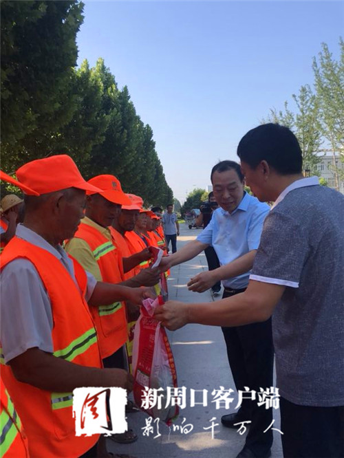 7月20日上午,鄲城縣總工會開展夏季“送清涼”活動,慰問了冒著酷暑堅守工作崗位的環衛工人、執勤交警和洺河生態水系治理一線建筑工人,為他們送去了毛巾、白糖、綠豆、風油精、洗衣粉、礦泉水等防暑降溫物品。