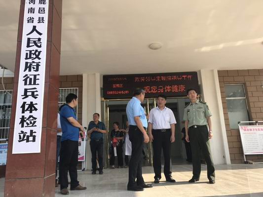 7月25日,鹿邑縣委常委、常務副縣長陸志杰,縣人武部部長陳巍帶領縣政府辦、衛計委、人民醫院等單位負責人深入到渦北衛生院調研指導征兵體檢工作。陸志杰一行首先對體檢點各體檢科室準備情況進行檢查,并現場辦公再次對體檢人員的選拔進行安排部署并提出具體要求,要求參與體檢的工作人員要切實履行好自身職責,嚴守征兵體檢工作紀律,按照兵員征收條件、標準辦事,嚴格把關,杜絕“人情兵”“關系兵”,做到廉潔體檢;要求人武部門加大宣傳力度,嚴明征兵紀律,嚴格審查把關,確保兵員質量,為部隊輸送一批高素質的優秀青年,圓滿完成今年全縣的征兵工作任務。