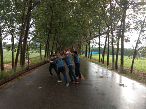 在東夏看張立交橋、李莊橋處,多棵行道樹被大風刮倒,大量枝掉落在公路上,嚴重危及行車安全和道路通行,執法人員立即冒雨采取安全防護措施,并利用車載應急搶險工具將倒塌在公路上直徑為10-20cm的樹木進行及時清理,并對殘枝落葉進行了全面清掃。歷時三個小時,及時地消除了道路安全隱患,保障人民群眾的出行安全。