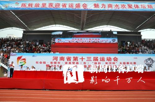 8月1日下午,河南省第十三屆運動會太極拳比賽暨商水縣全民健身日啟動儀式在商水縣體育中心舉行,來自全省各地27個代表隊的330多名運動員將參加太極拳比賽。