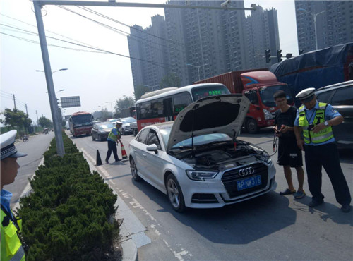 8月26日中午11點,周口港區公安分局民警發現,一輛私家車行經周項路周口港區路段時,發生故障停在快車道,影響道路暢通。港區交警部門負責人姜亞偉上前了解情況,得知汽車電瓶出現故障,無法正常發動。于是姜亞偉將警車開到私家車旁,用汽車電瓶連接線將警車電池與私家車鏈接,幫助車主啟動汽車,迅速恢復道路交通秩序。