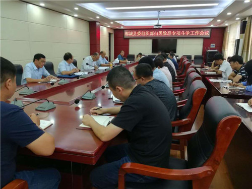 9月12日,鄲城縣委組織部召開掃黑除惡專項斗爭工作會議,會議貫徹落實全縣掃黑除惡專項斗爭暨軟弱渙散村整頓工作推進會精神,學習傳達《關于開展基層組織建設領域掃黑除惡專項斗爭的實施方案》,進一步對掃黑除惡專項斗爭、軟弱渙散村整頓和部機關干部作風建設進行安排部署,確保各項工作扎實推進、取得實效。縣委常委、組織部長侯磊出席會議并講話。