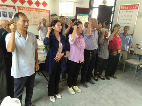 在代廟村,縣婦聯駐大連鄉(xiāng)代廟村工作隊首先組織全村黨員通過遠程教育黨建平臺,共同收看《鄉(xiāng)村振興戰(zhàn)略大家談》節(jié)目。隨后召開黨員會議,傳達通報近期全縣掃黑除惡、精準扶貧網格化管理、秋季秸稈禁燒等工作會議精神,并結合村情對有關工作進行安排。接著組織黨員上微黨課、升國旗、唱國歌、重溫入黨誓詞,交納九月份黨費。