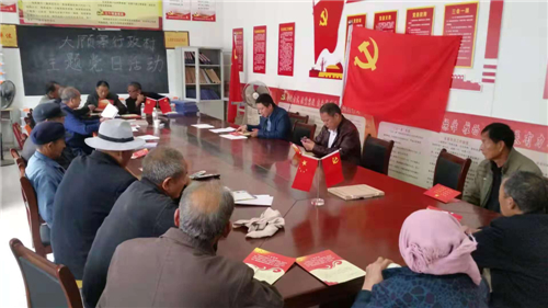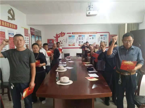 “我志愿加入中國共產黨,擁護黨的綱領,遵守黨的章程,履行黨員義務……”在汲水鄉張嶺行政村室,汲水鄉黨委副書記王申帶領全體黨員面對黨旗,一起重溫入黨誓詞,并學習黨章黨規。