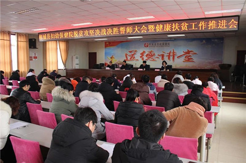 2月16日,鄲城縣婦幼保健院召開脫貧攻堅決戰決勝誓師大會暨健康扶貧工作推進會,醫院領導班子及全體幫扶責任人參加會議。