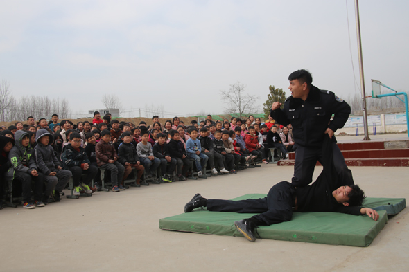 3月13日上午,一名黑衣男子闖進苑寨小學校園,將一名男生“劫持”。港區(qū)民警迅速到達現(xiàn)場,在與“嫌疑人”周旋的過程中,出其不意,迅速制服“嫌疑人”,救出受害學生。這是周口港區(qū)公安分局針對防范和制止劫持人質(zhì)等突發(fā)事件組織的應急演練,目的是通過模擬場景,提高師生安全意識和防范能力。