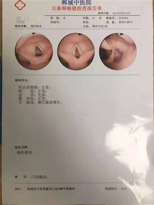 鄲城縣中醫院為進一步提高耳鼻喉臨床診療水平,更好地為廣大耳鼻喉患者服務。近日,新引進的纖維喉鏡系統(奧林巴斯T3)及工作站等設備正式調試完成,并投入使用。3月13日,完成第一例病人診療報告打印。