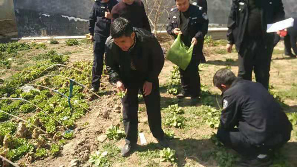 3月15日,大王莊派出所民警在簸箕劉村排查時,發現劉某家外菜地種植罌粟原植物6000株,經訊問,劉某對種植罌粟行為供認不諱;3月16日上午,民警在大王莊鄉王金莊村王某家菜地發現罌粟苗2980株,當民警向其講明種植罌粟的危害后,王某對種植罌粟苗治腰疼病的行為悔恨不已;當日下午,民警在大王莊鄉方莊村走訪中,發現在一片大蒜地里密密麻麻種植的罌粟,經清點為2001株,還有部分被黑色的障礙物遮擋住,經調查系村民方某種植。