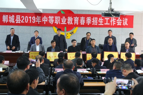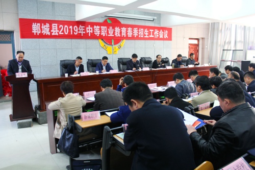 3月19日,鄲城縣2019年中等職業教育春季招生工作會議召開。縣教體局局長劉現營主持會議并講話,副局長劉士領,政府督學陶永昌,黨組成員馬力彬、張衛華、魏宏出席會議。