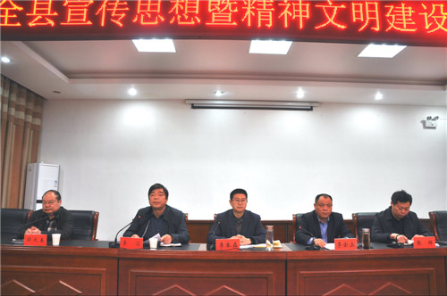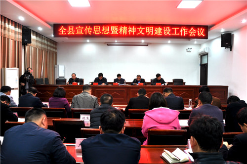 就如何做好今年的宣傳思想和精神文明建設工作,李本磊要求,要用好“學習強國”平臺,強化理論武裝;要建好新時代文明實踐中心、鄉村志愿服務中心、縣級融媒體中心,筑牢基層陣地;要抓好“三城兩縣聯創”“六村共建”“三個起來”等三項活動,普惠人民群眾;要突出工作主線,聚焦主題宣傳;要堅持團結鼓勁,營造輿論強勢;要立足凝神聚氣,倡樹文明新風;要發揮比較優勢,打造文化強縣;要著力增強“四力”,建設一流隊伍。