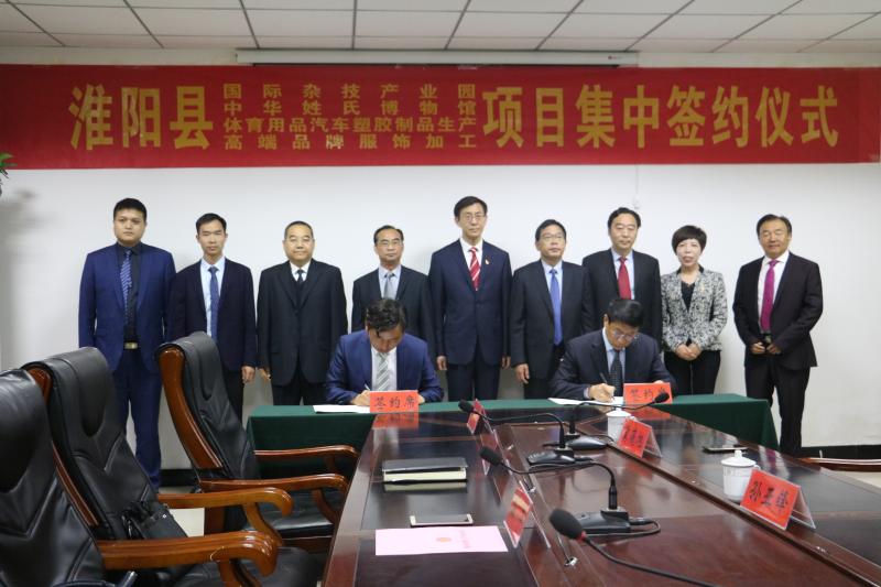 本次會議共簽約四個項目,總投資約17.5億元。分別是:河南龍都文化娛樂有限公司投資5.1億元的國際產業園項目。翰高兄弟(北京)投資集團投資10億元的中華姓氏博物館項目。東莞啟昊服飾有限公司投資1.2億元的高檔服飾加工項目;溫州奕銘新材料股份有限公司投資1.2億元的體育及汽車用品項目。