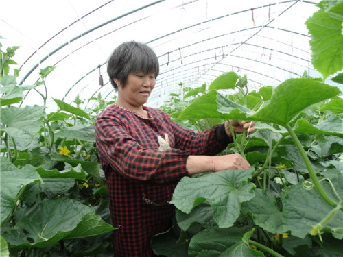 4月24日,沈丘縣周營鎮(zhèn)趙莊村生態(tài)蔬菜大棚基地里,綠油油的吊蔓黃瓜長勢喜人,少量已采摘上市。忙碌著的菜農(nóng)王翠霞告訴記者:“俺今年種了20畝地的大棚黃瓜,從種子肥料,到用水用藥,都有講究,要按標(biāo)準(zhǔn)化生產(chǎn),這樣種出來的黃瓜品質(zhì)好,客商搶著要。一畝地大棚瓜果蔬菜的年收入超過1.5萬元。”