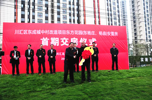 “真沒(méi)想到,我們能住上這么高大上的小區(qū)!”4月28日上午,在川匯區(qū)東成城中村改造項(xiàng)目東方花園(東楊莊、楊廟)安置房首批交房?jī)x式上,七一路辦事處東楊莊村村民孟改正笑容滿面地從區(qū)委書(shū)記李宗喜手中接過(guò)了新房的“金鑰匙”。這是中心城區(qū)實(shí)施大棚改工程以來(lái),川匯區(qū)交付的第一個(gè)正式安置房項(xiàng)目,標(biāo)志著該區(qū)安置房建設(shè)進(jìn)入了交房時(shí)代。