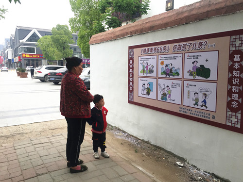 “文化墻既美化了環境,又能給我們老年人提供一些養生的建議,領導的想法好嘞很著呢!”家住馨麗康城63歲的趙姓居民在文化墻前由衷地發出了感慨,“大街上的宣傳標語,商店電子屏上的標語,街道上不停地清掃灑水,學校給學生發的宣傳手冊,現在,大人小孩都知道創建衛生城市了,環保意識也增強了,我的小孫子吃完的果凍盒,不見垃圾桶就一直拿在手里舍不得扔了。”