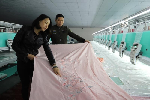 同時,城郊鄉(xiāng)發(fā)揮基層黨員干部和在外創(chuàng)業(yè)成功人士的廣泛人脈資源和經(jīng)濟優(yōu)勢,引導(dǎo)社會投資發(fā)展產(chǎn)業(yè)助力脫貧攻堅。谷集行政村美紡科技有限公司就是典型個例。石永紅、石永華、石磊姐弟3人來自江蘇南通,他們盯上了城郊鄉(xiāng)的富余勞動力,投資800萬元建設(shè)了近2000平方米的紡繡車間,20臺國內(nèi)先進設(shè)備可以利用全電腦操作繡出12種顏色的繡品。車間固定用工34人,其中建檔立卡貧困戶2人。只需要看著電腦控制臺、換布貼布、穿針引線,每人每天工資便可達到150元。