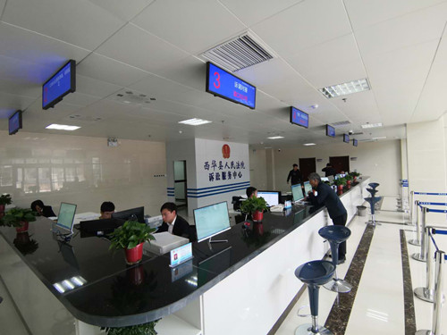 在西華縣人民法院訴訟服務(wù)中心,當(dāng)事人及社會公眾可通過訴訟服務(wù)智能系統(tǒng)的自助終端進(jìn)行網(wǎng)上立案、案件查詢、訴訟引導(dǎo)、閱卷申請、聯(lián)系法官和查看法庭位置、開庭公告等信息,并可打印文書樣式。