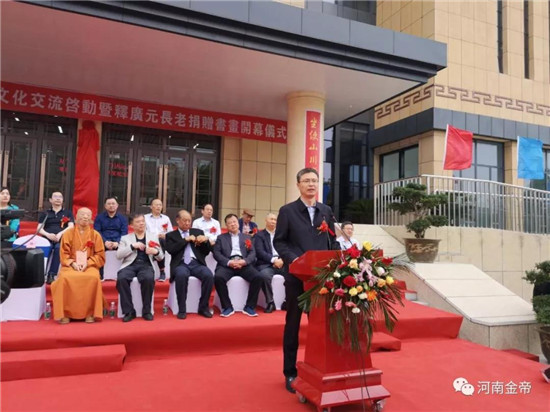 省文聯黨組書記王守國在開幕式上說,釋廣元長老不顧90多歲高齡,帶領50多名臺灣同胞,過海跨江,榮歸故鄉,出席捐贈活動,這不僅匯融了釋廣元長老的“鄉愁”情節,更是釋廣元長老不忘初心,反哺家鄉情懷的具體體現。希望越來越多的臺灣同胞蒞臨河南,感悟中原,融入中原,攜手并進砥礪前行共筑中國夢!