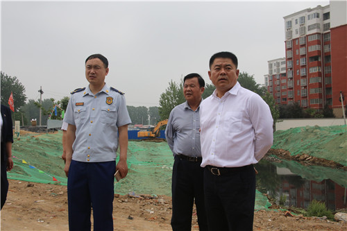 在橫五路安途物流項目施工地點南側,孫紅偉查看了運糧河污水治理情況,要求安途物流盡快拿出與周邊道路環境匹配的透綠圍墻方案。