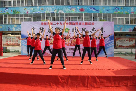 活動(dòng)儀式上,縣特殊教育學(xué)校學(xué)生和縣音樂(lè)家協(xié)會(huì)文藝志愿者分別為觀眾表演了精彩的文藝節(jié)目。縣特殊教育學(xué)校的學(xué)生首先表演了舞蹈《海草舞》,文藝志愿者周紅春演唱了歌曲《愛(ài)的奉獻(xiàn)》、《天南地北淮陽(yáng)人》、李泉稼小朋友演唱了豫劇《洼洼地里好莊稼》,淮陽(yáng)特殊教育學(xué)校學(xué)生表演了節(jié)目《感恩的心》。精彩的表演贏得了現(xiàn)場(chǎng)觀眾的陣陣掌聲。