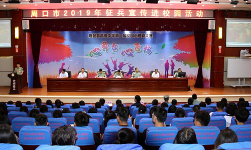 5月27日上午,周口市征兵宣傳進校園在鹿邑縣高中隆重舉行。市征兵辦公室副主任、周口軍分區動員處處長李保祥,鹿邑縣委常委、縣人武部政委杜寶森,縣人武部部長陳巍和鹿邑縣委宣傳部、教體局、縣高中負責人及師生800余人參加了此次活動。