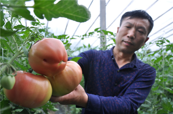 5月25日,商水縣姚集鎮蔬菜種植基地技術人員正在查看自然成熟的番茄。據了解,該鎮有蔬菜種植合作社20多家,主要種植番茄、小白菜等,年產值近億元,蔬菜生產已經成為該鎮支柱產業。