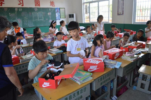 說干就干,回到公司,他便安排專人負責,為母校的260多名師生每人購買了一雙出廠價200余元,總價值5萬余元而市場價則需10多萬元的國際知名品牌—耐克牌運動鞋,為學校落實陽光體育運動,強健孩子的體魄打下了良好的物質基礎,受到當地干群的一致好評。