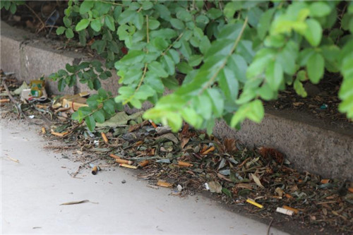 當日上午,督導組一行走進歌莉婭院內,記者看到,綠化帶內幾乎沒有創衛的跡象,多處垃圾死角,陳年垃圾未清理,瘡痍滿目,讓人不敢直視。在創建國家衛生城市的緊要關口,竟然還有這樣的地方存在,令督導組所有人咋舌。