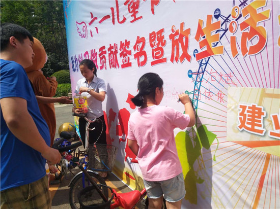 活動方先后組織了創衛貢獻墻簽名、放養魚苗、游戲互動、發送禮物等活動環節。通過參與簽名,提升小朋友們的衛生健康責任感,號召小朋友們爭當創衛小衛士、文明小市民,和家長一起積極參與到創建國家衛生城市中來,貢獻出自己的力量;通過放養魚苗,幫助小朋友培養、樹立和鞏固綠色環保意識,引導孩子們保護生態環境要“從我做起,從身邊做起,從小事做起,從現在做起”?;顒幼詈?,舉辦方為每一個參加活動的兒童送上心愛的糖果,讓小朋友們高興而來,盡興去玩,滿載而歸。
