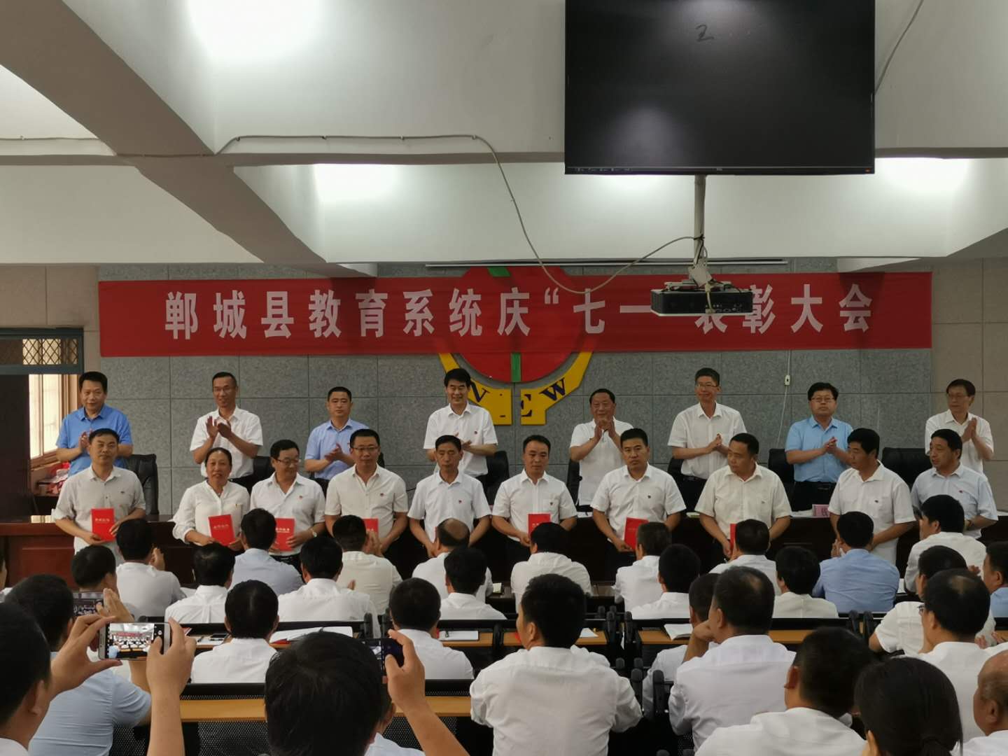 6月26日下午,鄲城縣教育系統慶“七一”表彰大會召開。縣教體局黨組書記、局機關黨委書記、局長劉現營出席會議并講話。局黨組成員、副局長張祥增主持會議。