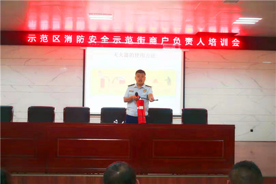 為切實(shí)做好消防安全示范街建設(shè)標(biāo)準(zhǔn)創(chuàng)建活動(dòng),提高廣大群眾的消防安全意識(shí),有效預(yù)防和減少火災(zāi)事故發(fā)生。近日,城鄉(xiāng)一體化示范區(qū)消防救援大隊(duì)組織召開(kāi)消防安全示范街商戶負(fù)責(zé)人培訓(xùn)會(huì),培訓(xùn)會(huì)由區(qū)消防救援大隊(duì)隊(duì)長(zhǎng)高磊主講,轄區(qū)內(nèi)府苑街及府匯街的120余名商戶負(fù)責(zé)人參加了培訓(xùn)。