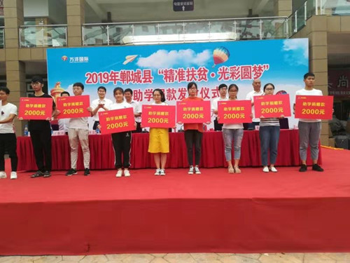 本次“精準扶貧·光彩圓夢”由縣萬洋集團慷慨解囊、傾情相助,共捐資20萬元,對100名品學兼優的貧困學子給予資助,為鄲城的教育事業增光添彩。