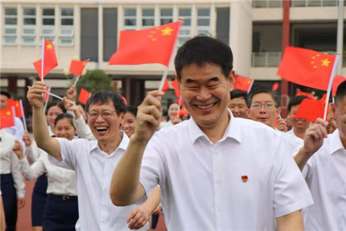 “我和我的祖國,一刻也不能分割。無論我走到哪里,都流出一首贊歌……”8月26日,在鄲城縣第二實驗小學,縣教體局黨組書記、局長劉現營帶領局黨組成員、機關各黨支部書記和二實小全體師生同唱《我和我的祖國》,用歌聲表達全縣教育人對祖國的無限熱愛。