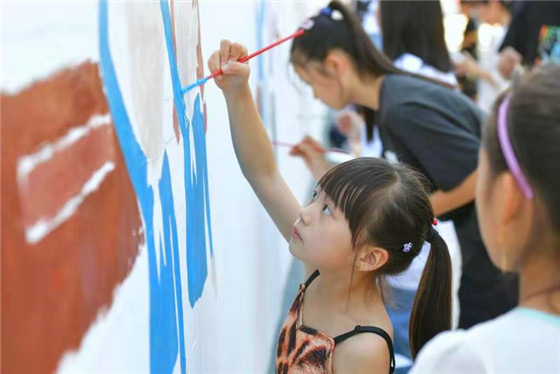 活動現場,參與者們從設計構圖到勾勒輪廓,從調制顏料到搭配色彩,每一個步驟、每一道工序都一絲不茍。大家圍繞“禮贊新中國 歌頌新時代”這一主題,在近百米長的墻面上認真作畫,只見現場參與者工筆勾線、揮毫上色,經過一個多小時的創作,“社會主義核心價值觀”“中國夢”“市民文明公約”等愛國元素躍然墻上……內容豐富、形式多樣,一幅幅作品色彩明快、質樸純然,充分展示了書畫志愿者們對祖國和家鄉的熱愛,對藝術的追求和對美好生活的向往,宣傳了中國傳統書畫藝術,提升了新時代文化自信,為該縣美術愛好者帶來了一場藝術盛宴。