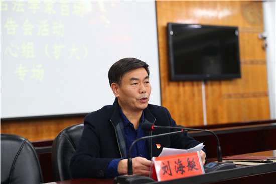 11月26日晚,太康縣在縣委綜合樓召開(kāi)縣委理論學(xué)習(xí)中心組(擴(kuò)大)“不忘初心、牢記使命”主題教育夜校法治宣講活動(dòng)專場(chǎng)報(bào)告會(huì)。河南工業(yè)大學(xué)法學(xué)院教授、博士生導(dǎo)師譚波作《依法治縣與法治太康建設(shè)》專題講座。縣委副書(shū)記、縣委政法委書(shū)記劉海艇主持會(huì)議。縣副處級(jí)以上領(lǐng)導(dǎo)干部,縣直各單位黨政正職,縣委各部委辦副職,各鄉(xiāng)鎮(zhèn)鄉(xiāng)鎮(zhèn)長(zhǎng),人大、政協(xié)機(jī)關(guān)各委室主任、副主任共100余人參加會(huì)議。