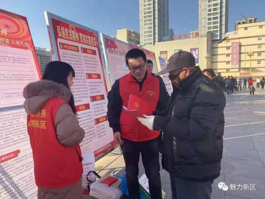 12月4日上午,區信訪維穩和法制工作辦公室組織工作人員和法律顧問參加大型現場普法宣傳活動,通過發放宣傳單頁、擺放展板、現場咨詢等形式對憲法和反邪教進行宣傳。