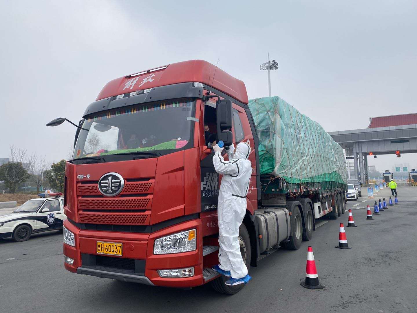 執(zhí)勤過程中,他們渴了不敢多喝水,因為穿上防護(hù)服后大小便都困難;餓了也就抽出10來分鐘時間吃一碗泡面。每天夜間11時后,車流量大大減少,宗圣余總是以“命令”的口氣讓同事到帳蓬里休息一下,而他則堅守在高速出口的檢查通道上,即使沒有一輛車,他也手持體溫檢測儀,朝著出口方向張望著。就這樣,那天起,宗圣余一直忙碌在卡點,直到今天,他還一直堅守。