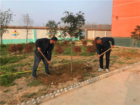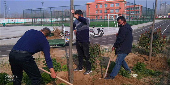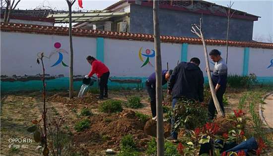 在學校老師的努力下,在蔣莊村干部群眾支持下,經過10多天的辛勤勞動,蔣莊小學今年新栽植綠化樹、花木5000多棵(株),本來綠色盎然的校園又添新綠。