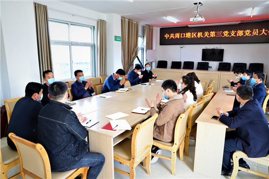 3月11日下午,周口港區機關第三黨支部召開黨員大會,會議研究同意三名同志由中共預備黨員轉為正式黨員。港區黨委委員、機關黨委書記張東立向三名新黨員表示祝賀,并勉勵他們要繼承共產黨人優良傳統,充分發揮共產黨員先鋒模范作用,做好今后工作。