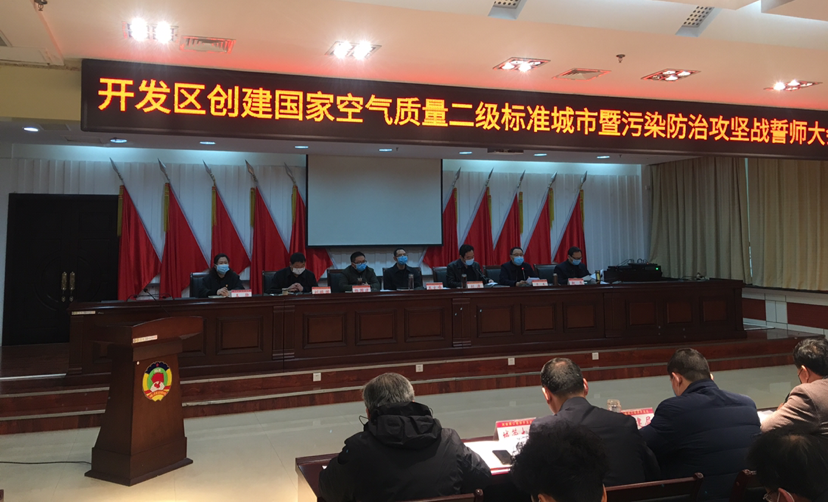 3月13日,開發區召開創建國家空氣質量二級標準城市暨污染防治攻堅戰誓師大會。開發區黨委書記王文峰出席會議并講話。開發區管委會主任劉濤主持會議。開發區領導楊國建、于杰、趙愚、王靜及市公安局太昊路分局政委劉振國參加會議。