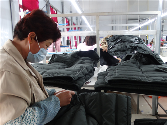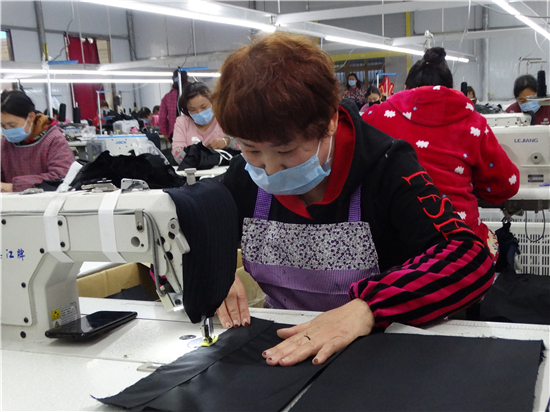 疫情不能放松,復(fù)工復(fù)產(chǎn)也要穩(wěn)妥推進(jìn)。連日來,沈丘縣婦聯(lián)鼓勵引導(dǎo)和組織廣大婦女群眾科學(xué)安全有序助力企業(yè)、農(nóng)業(yè)合作社、扶貧車間等復(fù)工復(fù)產(chǎn),確保戰(zhàn)"疫"扶貧兩不誤,為統(tǒng)籌推進(jìn)防疫戰(zhàn)和脫貧攻堅(jiān)戰(zhàn)貢獻(xiàn)巾幗力量。圖為沈丘縣周營鎮(zhèn)馬營村慧恩服飾有限公司來料加工扶貧車間內(nèi),女工們正在生產(chǎn)線上加工訂單服裝。