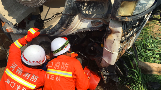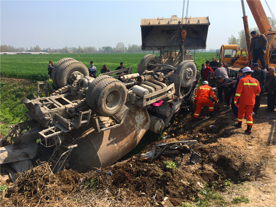 4月7日9時許,沈丘縣李老鄉劉堂村附近一輛攪拌車翻入溝內,司機人被困。接到報警后,沈丘縣消防救援大隊立即出動前往救援。