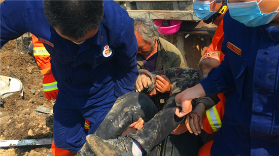 時間就是生命,在吊機工作人員和消防救援人員的密切配合下,變形的駕駛室被緩緩吊起,救援人員立即使用液壓擴張器和液壓頂桿對駕駛室變形部位實施擴張和撐頂。經過大約20分鐘的緊張救援,傷員被成功救出,并交由家屬送往醫院救治。
