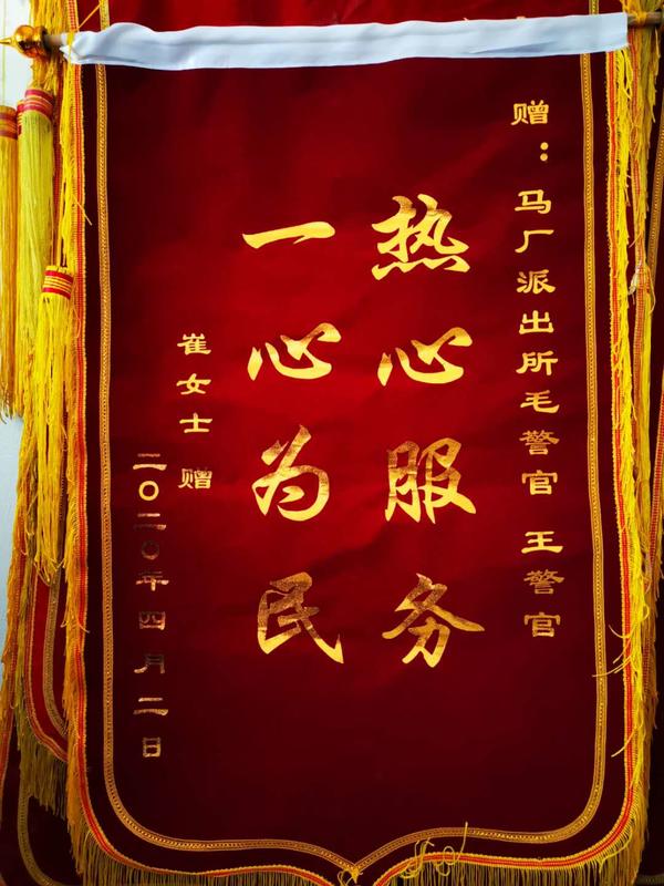 為向民警致謝,崔女士家人多次聯系馬廠派出所所長毛衛庚說要表示感謝,都被婉言謝絕了。近日,已身在鄭州打工的崔女士每次想到那晚民警們對她們的幫助都心存感激,于是她就手寫了一封感謝信,并制作了一面錦旗,從鄭州郵寄到家里,讓親戚幫忙送到馬廠派出所以示感謝。